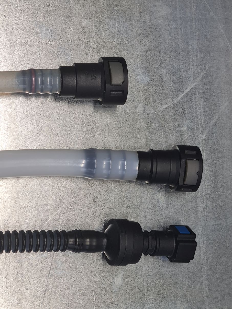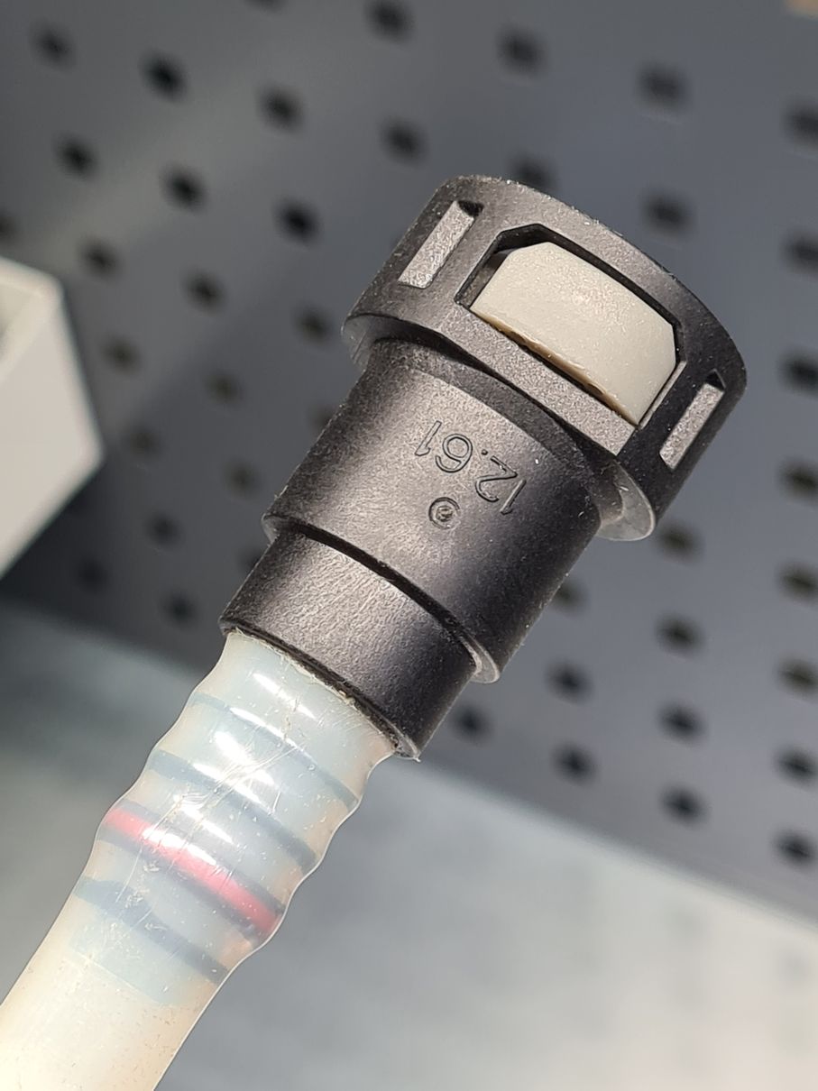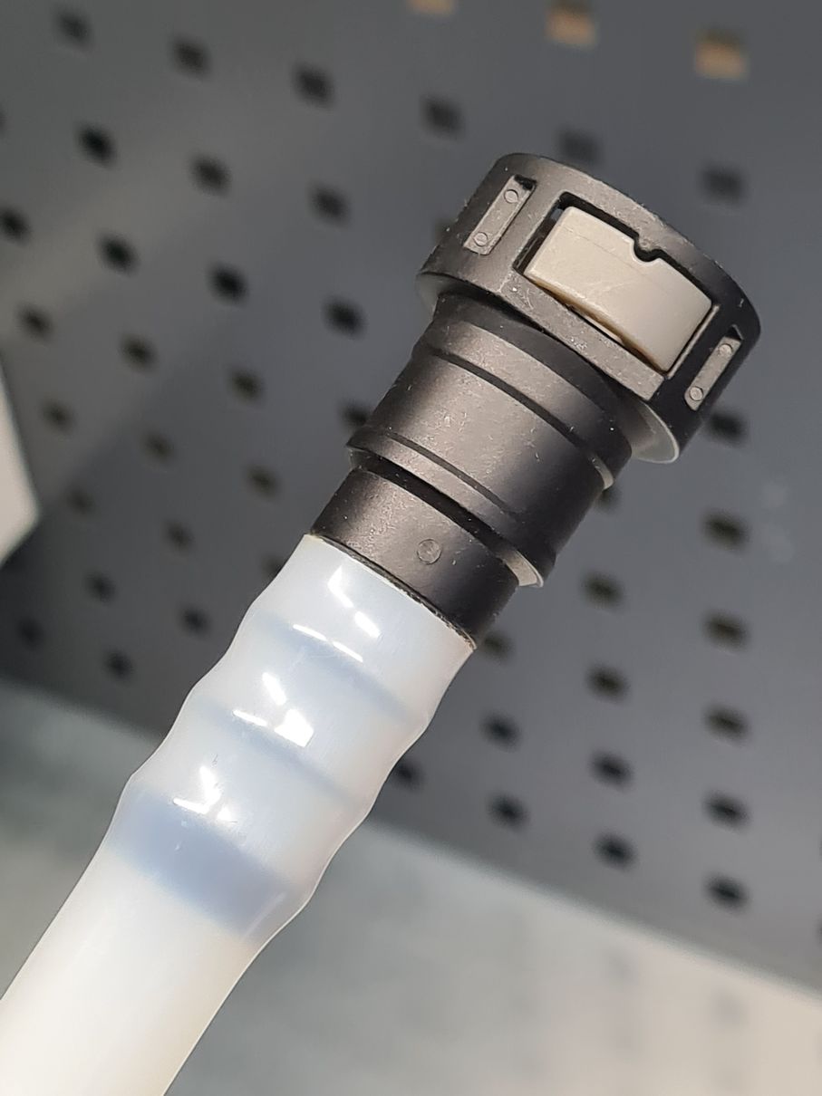 Напрессовка пластиковой полиамидной трубки на топливный быстросъемный штуцер.