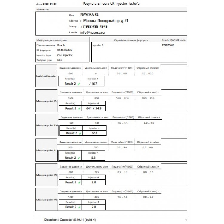 Диагностика форсунки BOSCH 0445120153 на стенде |